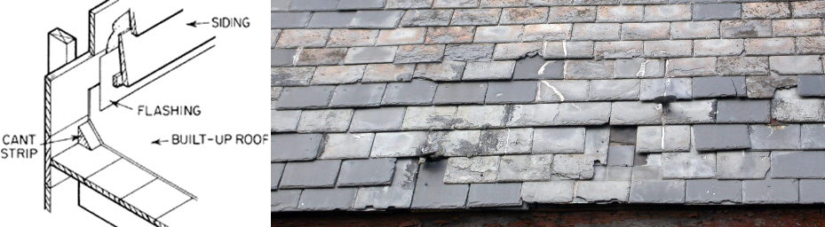 Snow and ice sliding over slate can occasionally break field slate. If more than one piece of slate per square is broken, there may be a more serious problem. For example, slate breaking along the eave is a sure sign that a cant strip was not installed.