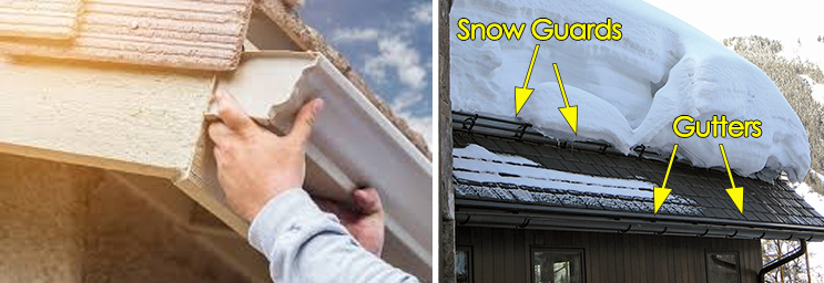 Snow and ice sliding off of the roof can damage gutters. Damaged gutters can cause damage to the structure. Take the time to protect your gutters and roof protrusions by installing snow guards.